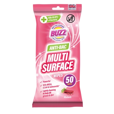 Buzz Multi Surface Anti Bac Wipes 50pk Rhubarb